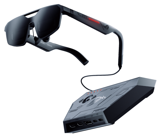 The ROG XREAL R1 AR creates seamless and immersive ROG Ally-optimized gaming experiences by offering a 57° expanded view, 3 Degrees of Freedom, electrochromic tinting technology, and Sound by Bose technology for an immersive audio experience. This next evolution of spatial gaming displays has been created in partnership with XREAL, an award-winning global leader in consumer AR glasses. These gaming glasses redefine what large-format gaming can be, transforming signature ROG performance and visual excellence into a spatial display that can be worn and experienced on the go.