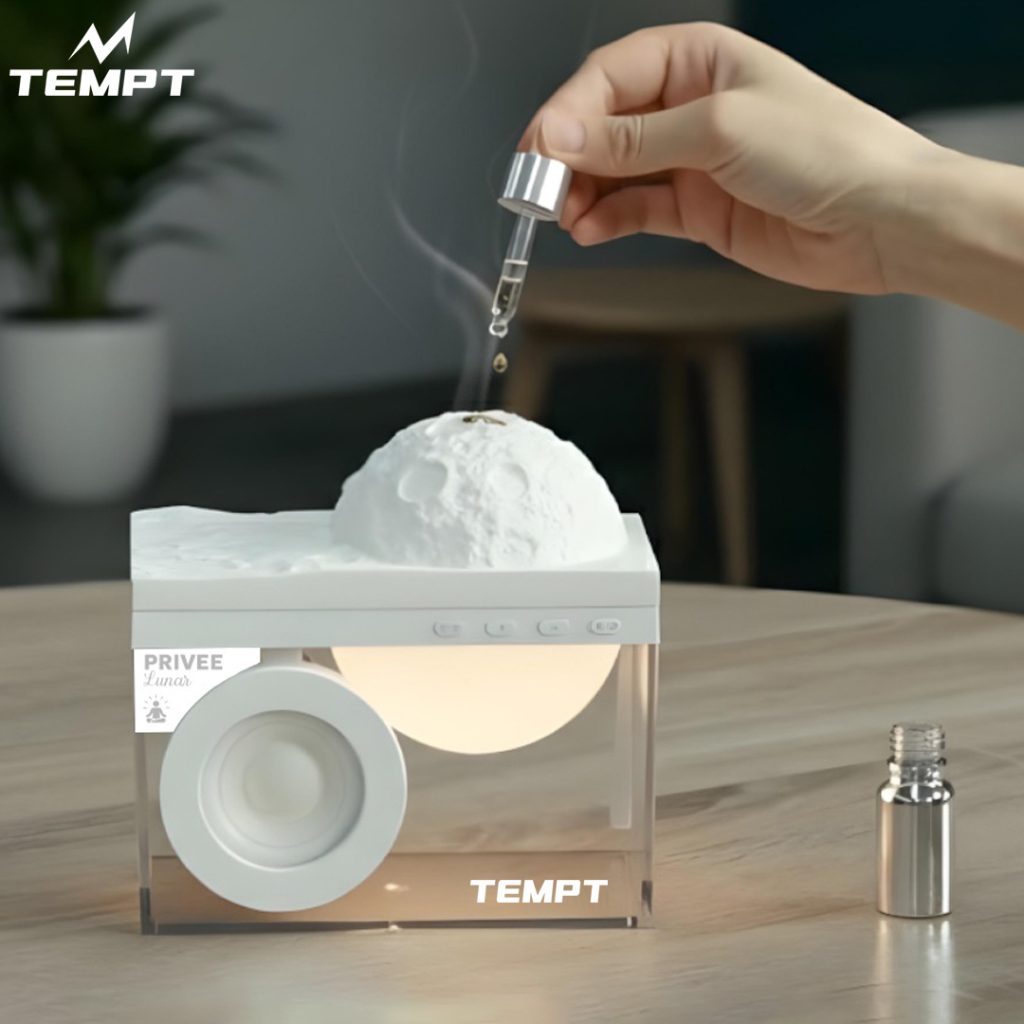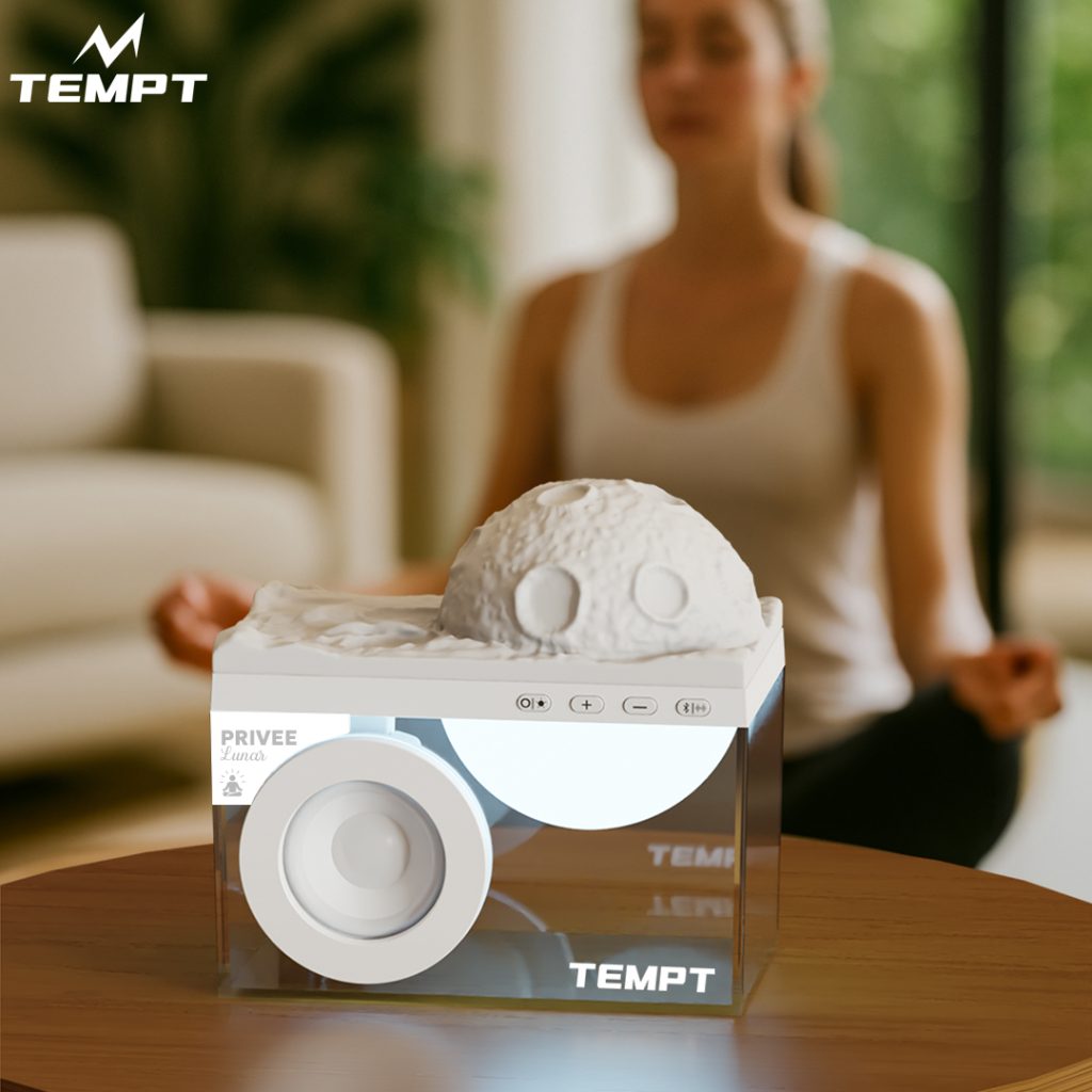 TEMPT India takes pride in announcing a single device that offers one complete solution for both home and office — a lifestyle product that transforms any surrounding into a calm, sensory escape. Introducing the PRIVEE Lunar — an elegant and modern 4-in-1 Bluetooth speaker designed for those who value calm, aesthetics, and mindful living in their everyday spaces.